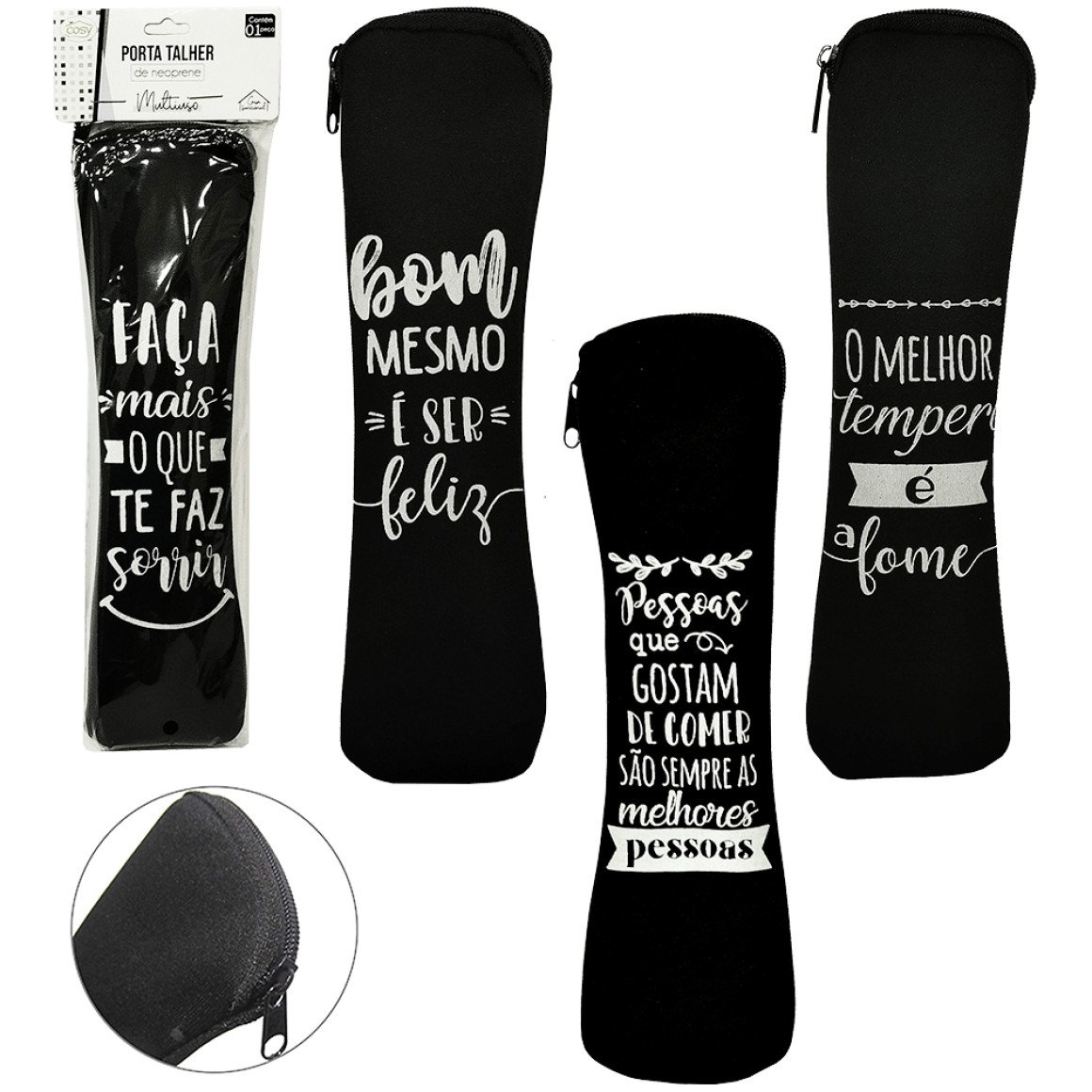 TIPO DE PRODUTO: PORTA TALHER ESTOJO COM ZIPER NEOPRENE FRASES